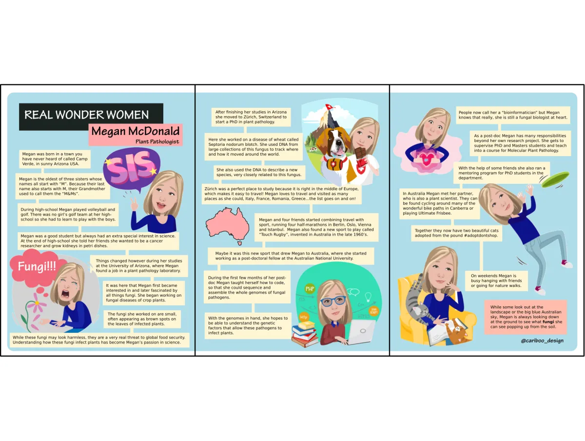 A behind the scenes look at Dr Megan McDonald. This Biocomic was created by scientist Dr Marina Trigueros @cariboo_design, another awesome woman in STEM