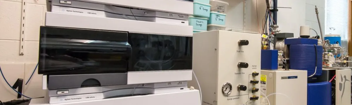 As we are a research laboratory, the selection of equipment available (and how it is connected) is somewhat fluid but the following gives a typical overview. Note that δ13C and δ15N analyses plus %N, on organic solids, are almost always available. See the slideshow below for details of equipment set-up and photographs.